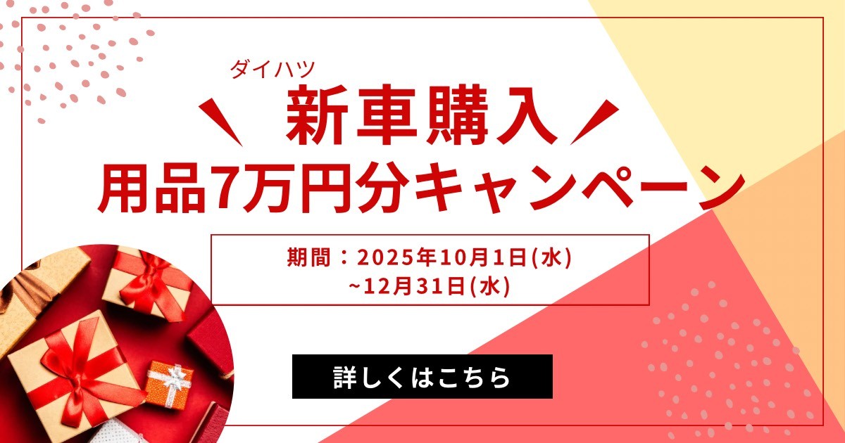 ダイハツの「用品7万円分プレゼントキャンペーン」は、期間限定ながら非常に魅力的な内容です。