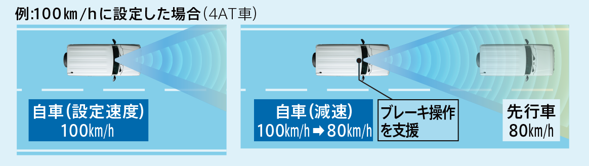 ・アダプティブクルーズコントロール(ACC):4AT車には全車速追従機能付き。