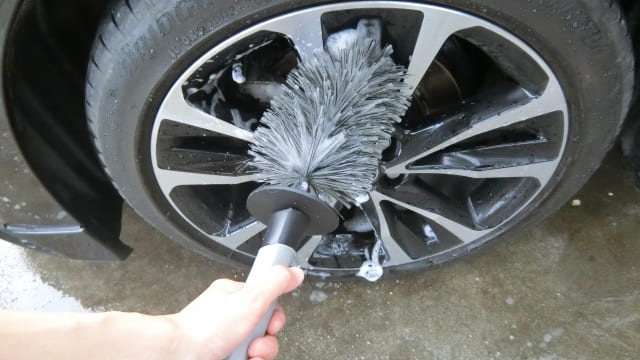 ・タイヤには艶出し剤を使って黒々とした印象に。