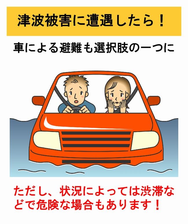 ・津波警報 → 迷わず高台へ → 車は原則使わない